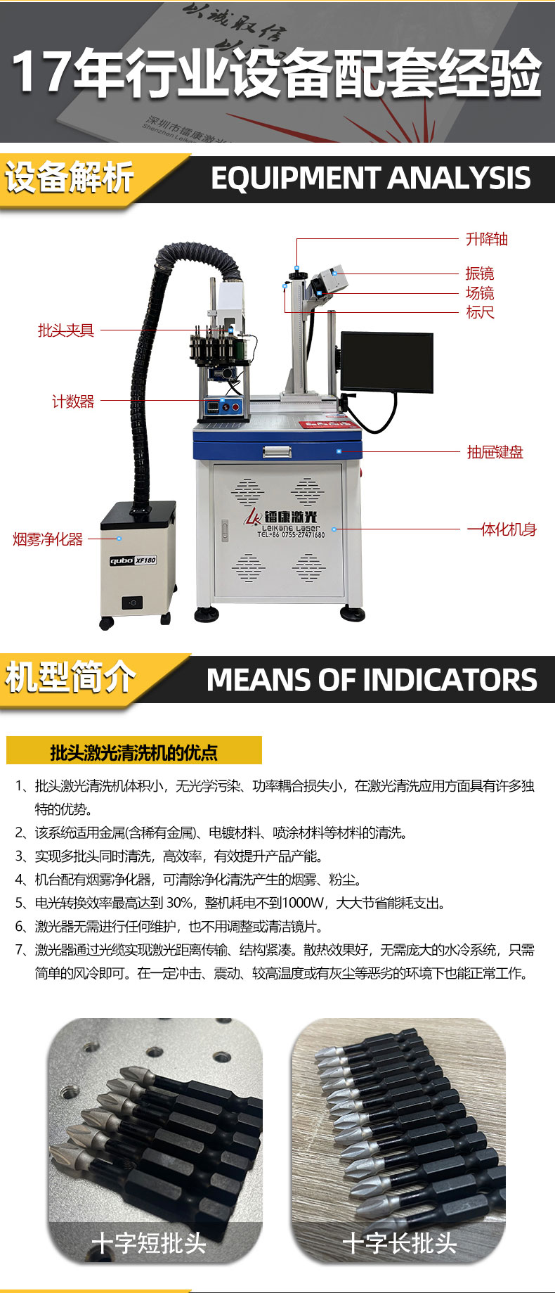 產品說明:批頭激光清洗機體積小,無光學污染、功率耦合損失小,在激光清洗應用方面具有許多獨特的優勢。
